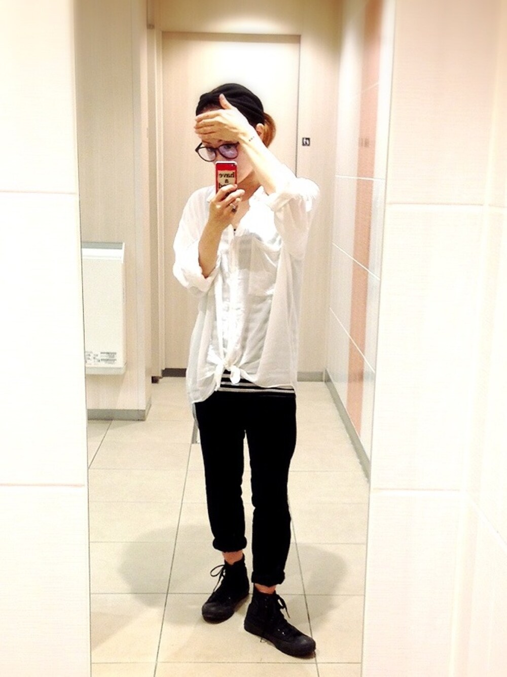 2014.7.10 母ちゃんコーデ デコ…広すぎ。 娘さんと双子コーデを こっそり✧˖◡̈⃝°˖*✧˖◡̈⃝°˖* シャツ◁AZUL ボーダータンク◁OLD NAVY パンツ◁UNIQLO 靴◁converse あ。白シャツ着たら オールじゃないか…