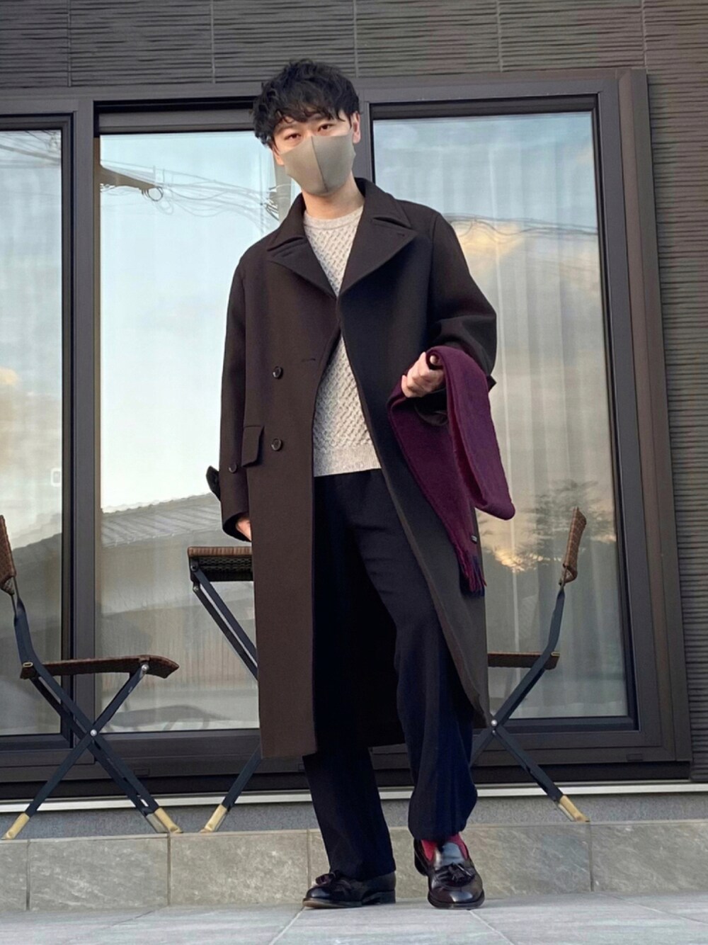 たけるのチェスターコート「Super140s OFFICER COAT」を使ったコーディネート