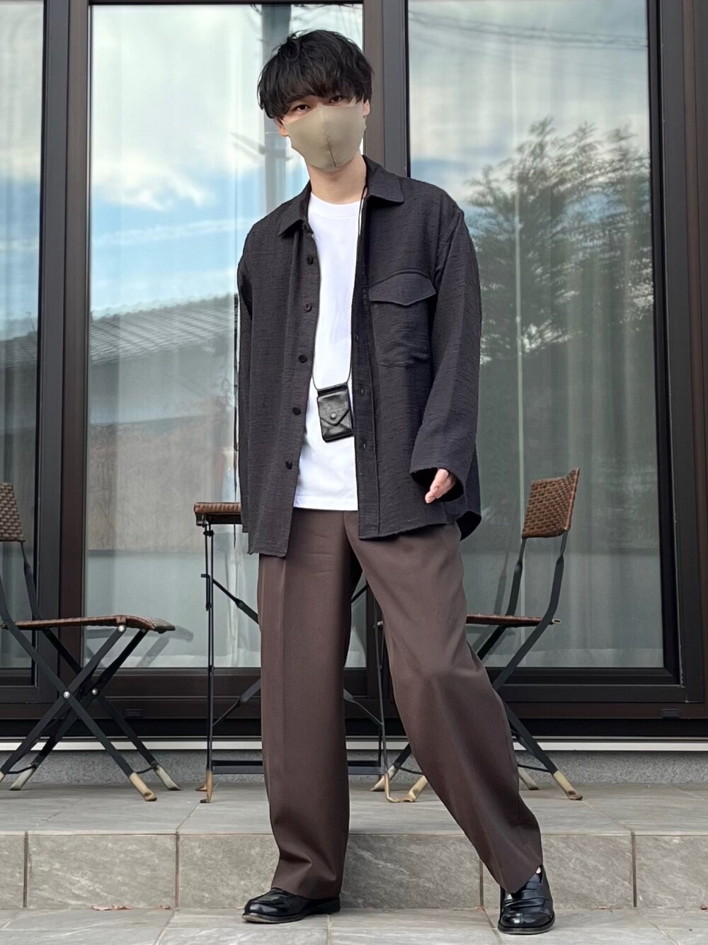 ご覧いただきありがとうございます。 いいね、お気に入り、フォローうれしいです。 秋色コーデです。チャコールのツイードシャツにブラウンのワイドスラックスを合わせました。auraleeのワイドスラックス、色合いもシルエットも素材感もとても気に入ってます。 前回のコーデもたくさんのいいね、お気に入り、ありがとうございました。 とても励みになります。