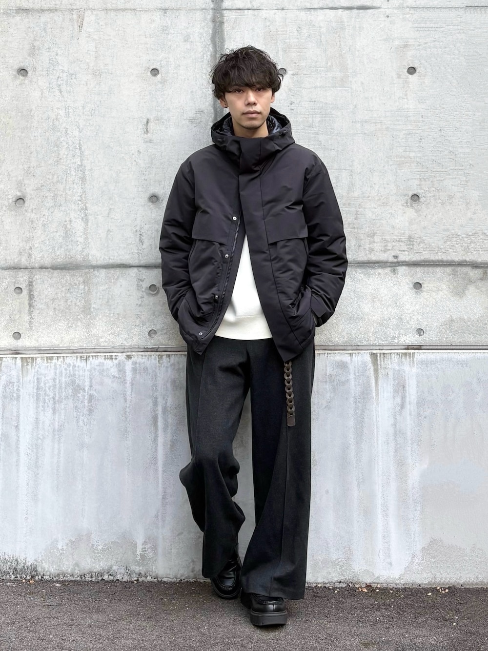 UNIQLO +Jのハイブリッドダウンオーバーサイズパーカを使ったコーデです。UNIQLOは40周年記念復刻コラボが行われていますね。+J発売当時購入できなかったので、今回の復刻で購入できて満足です。