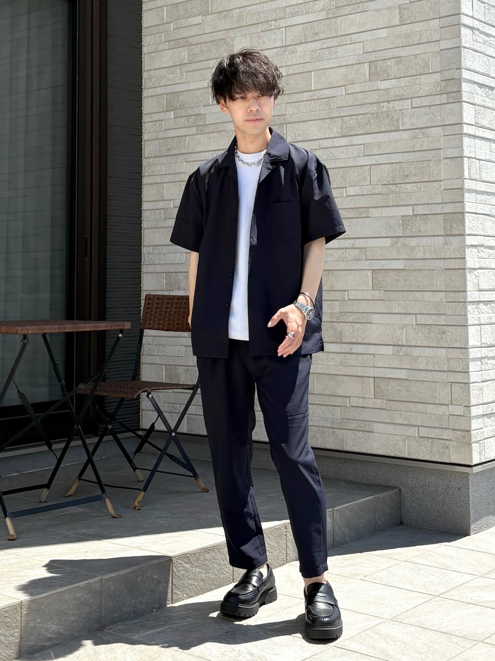 #pr ikka様からご提供いただいたアイテムでコーデを組みました。ネイビーのセットアップはコーデを考えなくても程よい抜け感でキレイにきまるので、間違いのないアイテムです。
