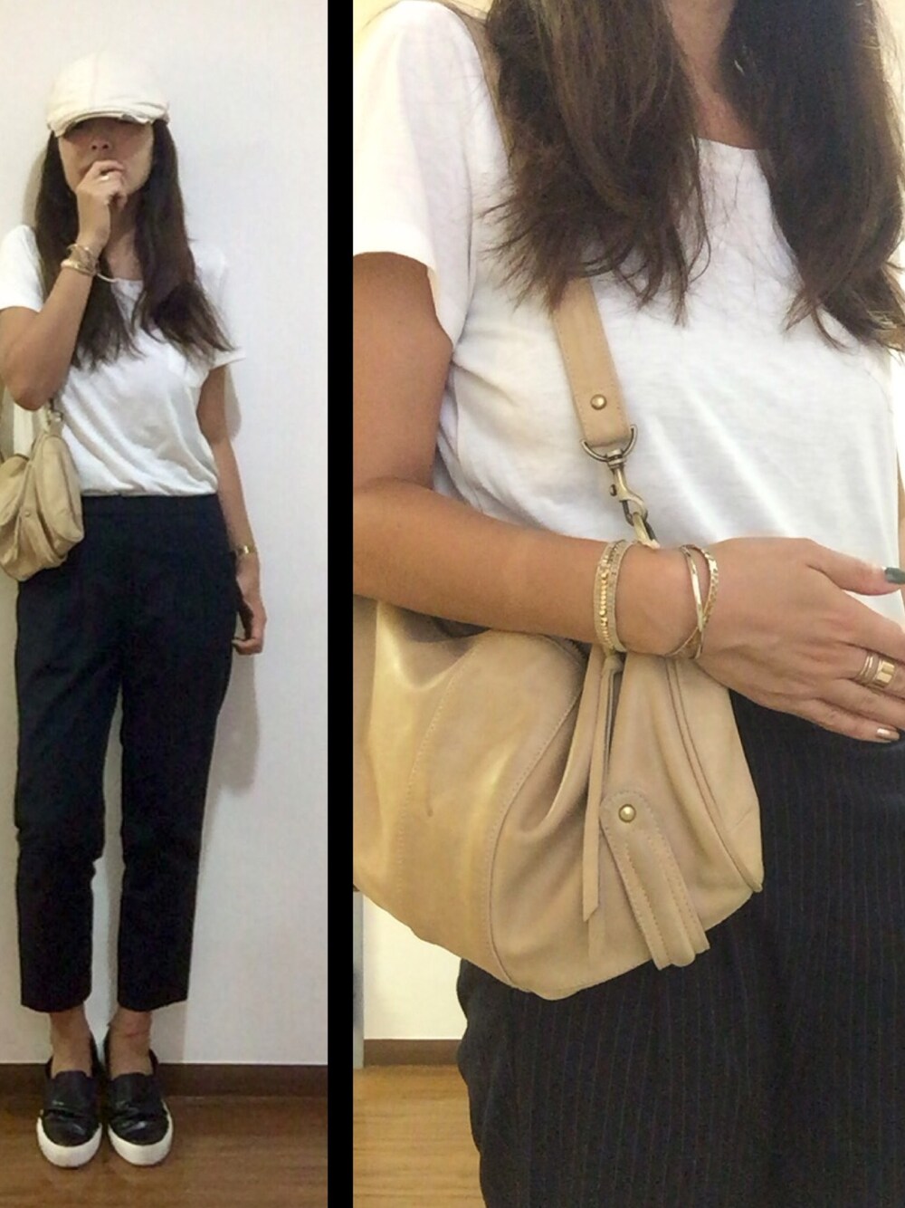小物をベージュで揃えました。 帽子は、7年選手で色落ちし白っぽいです😆