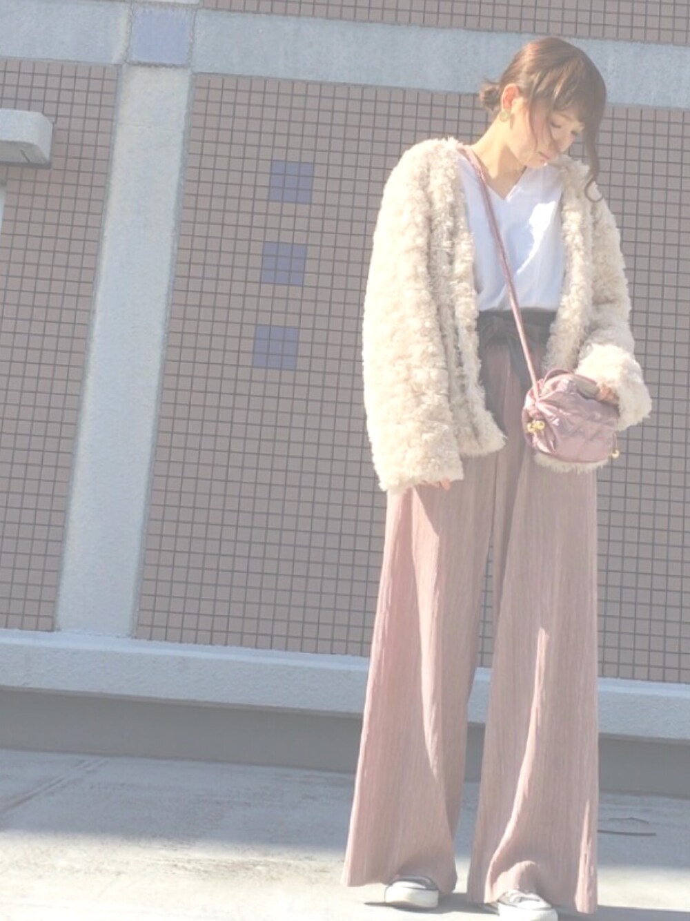 シアタープロダクツのキルティングポシェットかわいすぎて、、、♡ バックに合わせたコーデにしようとしたらブリブリコーデに、、、(笑)🌷 instagram💗____riee👈_のアンダーバー4つで検索して、フォローしてもらえると嬉しいです💗💗👗