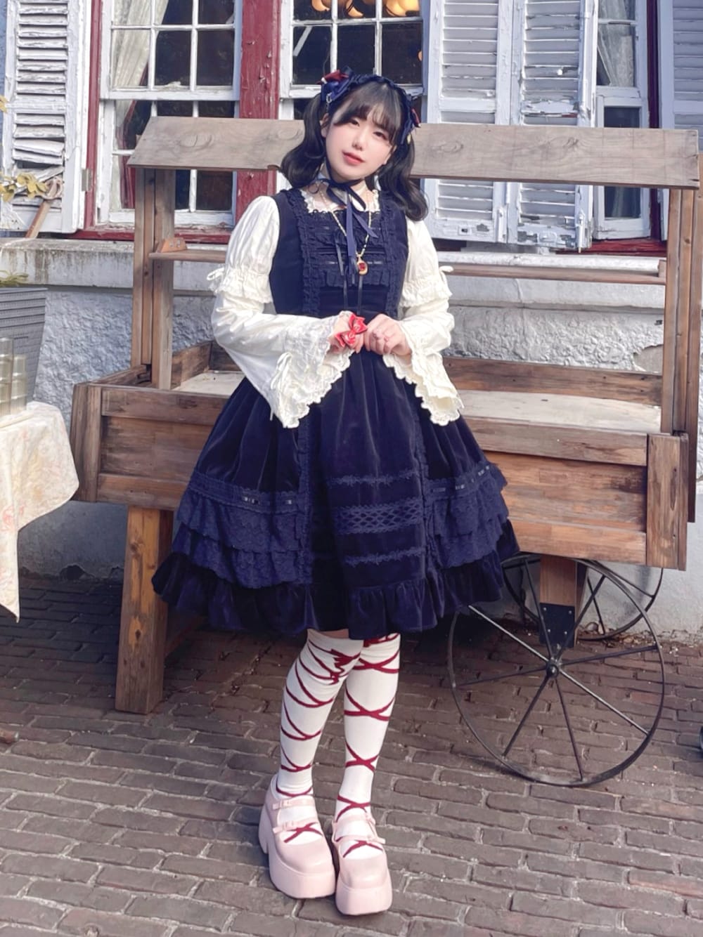 別珍レースフリル、前回は白ブラウスと合わせたから今回は生成りの姫袖と合わせてまた違う雰囲気で着てみたー!かわいい❤︎