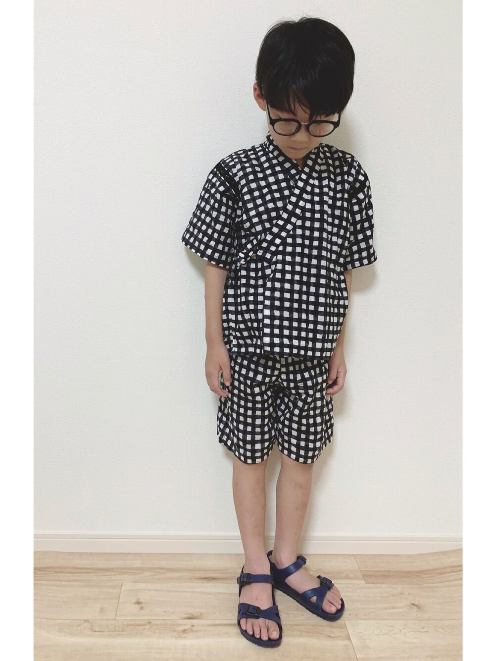 甚平男子♪ 前に作った甚平を着せてみました☺️ ジャストサイズだったけどこれでお家花火楽しみました😊