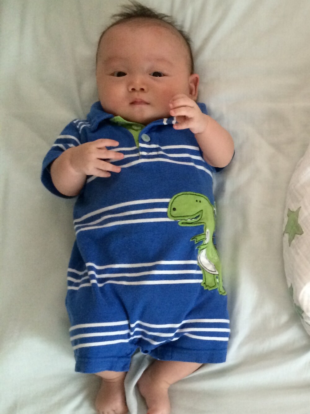ブルー系のロンパースを着用したキッズの夏コーディネートの1枚目の写真