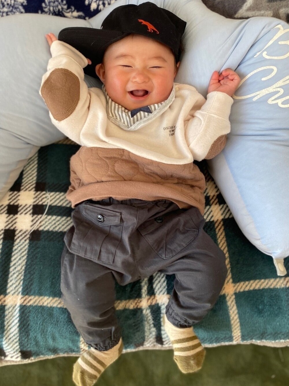 おはようございます🌞 今日はパパがコーディネート!! ポイントはパンツ!!🩳 一目惚れで購入しました💓 帽子はティラノサウルス🦖 SALEで500円💰✨