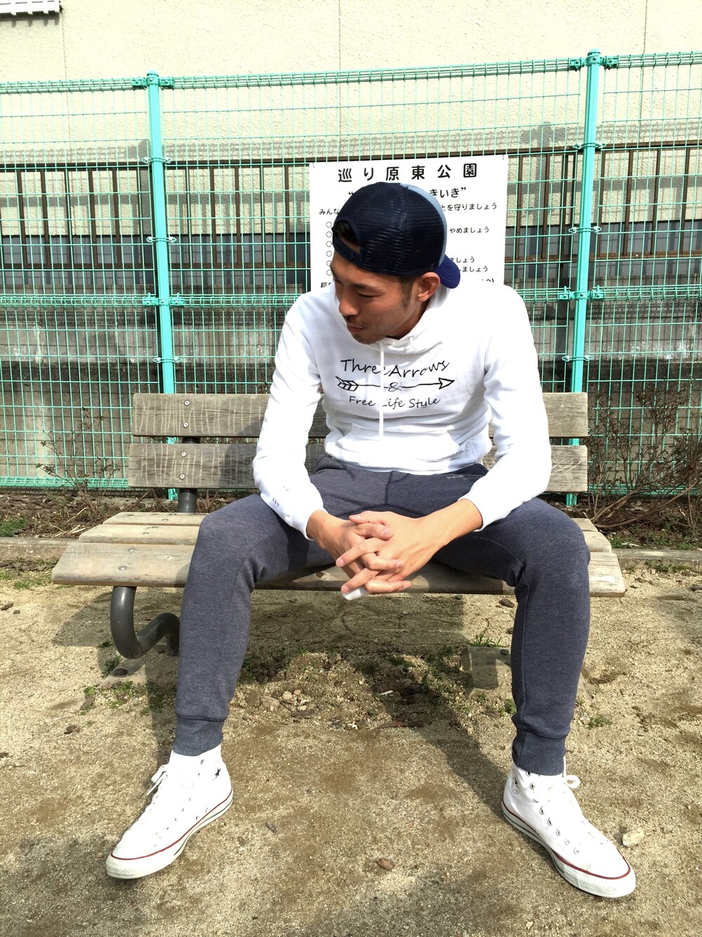 公園見守り隊 ベンチに座って飛び出す子供を監視中😎 今日もめちゃラフな感じ👍✨✨ あったかいし、これで十分🌞🌞 気が向いたらインスタも見て下さい rmyt951216