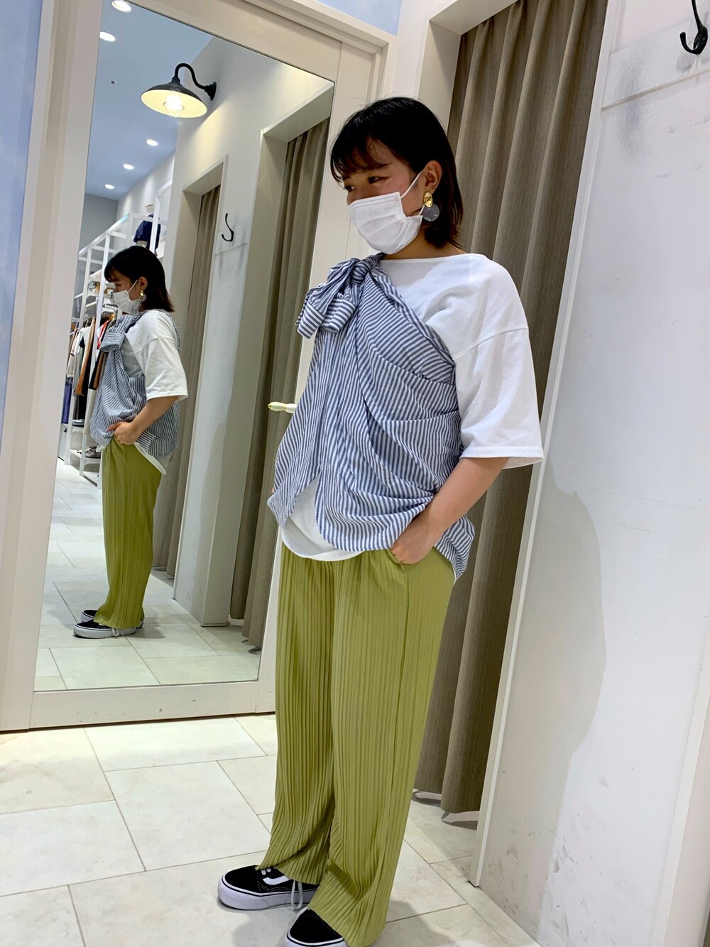 ご覧頂きありがとうございます🥰 本日の出勤コーデです🌼 シャツは肩掛けにしていつもと違う雰囲気で 着てみました🙈 Tシャツはベストとセットの商品ですが 別々で使えるので着回しできてオススメです😊 プリーツパンツも生地が柔らかくて 裏地がないのでお出かけだけじゃなく お家でも履いて頂けます🌿 是非チェックしてみてください👀