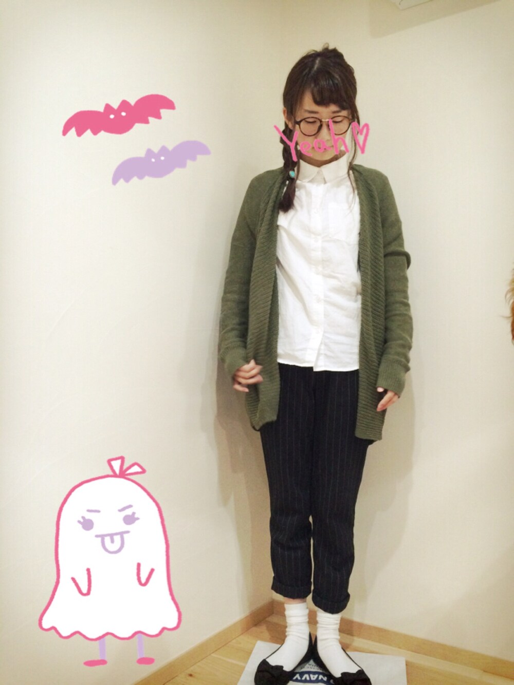こんにちは! だんだん寒くなってきたけど 昼間は良いお天気で ほのぼのします(∗ ˊωˋ ∗) このカーキのカーディガンは たしか900円くらい! 安い〜〜嬉しい〜〜♡ もうすぐハロウィンですね! 仮装したいな〜〜 はぴはぴっ!