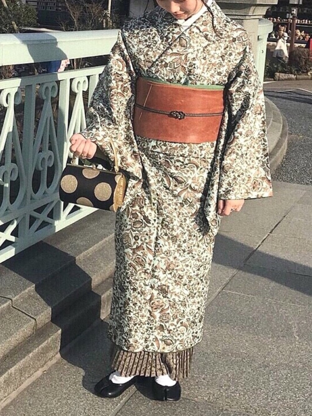 金沢旅行に行ってきたときの着物です レザーの帯がお気に入り〻〻