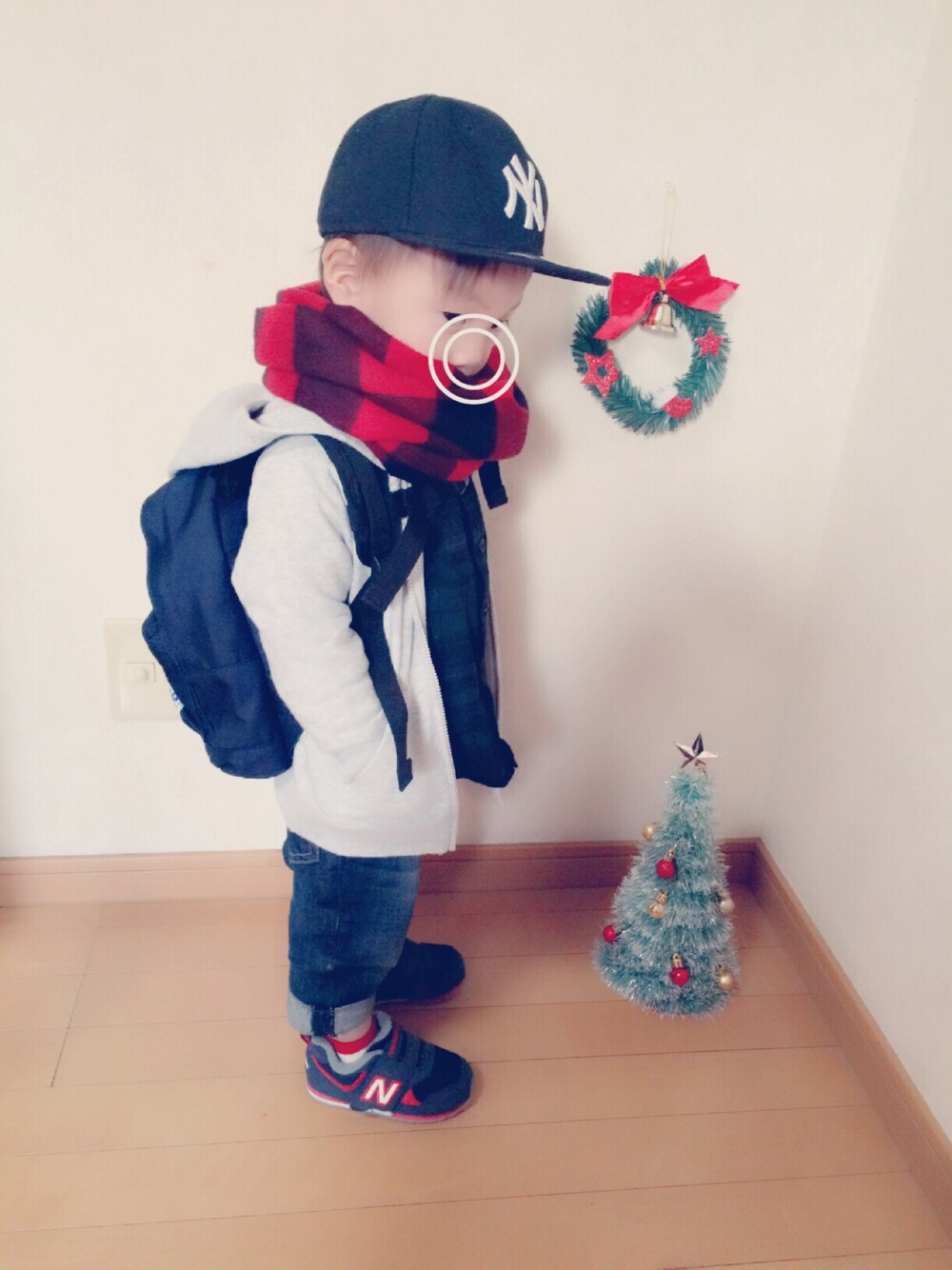 コーデのワンポイントになる 赤チェックのマフラー探してて やっと息子に合うのに出会えた🙆🏻💕