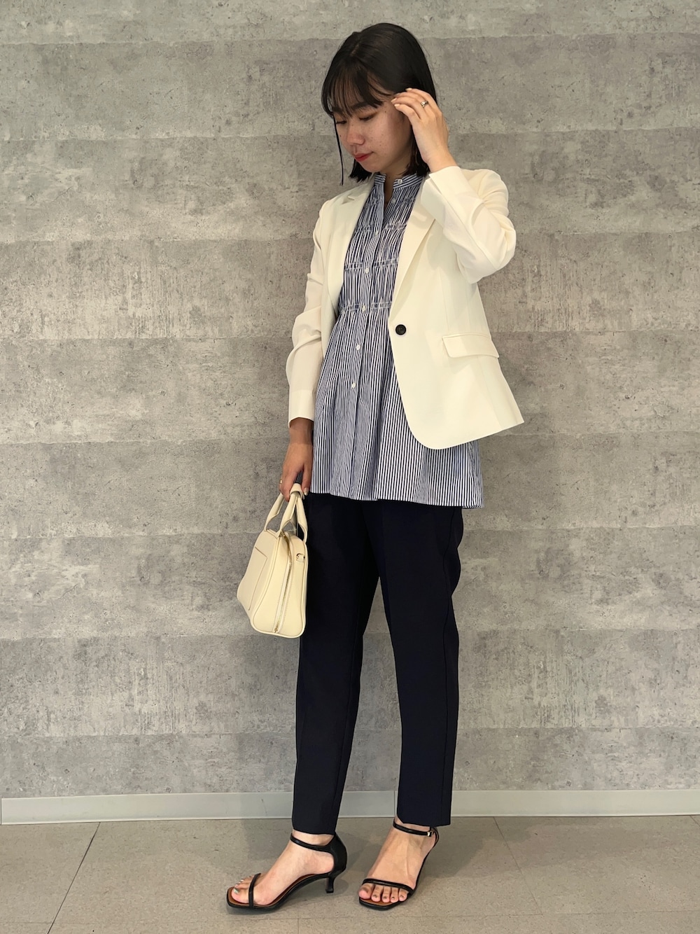 初夏オフィススタイル🎐 ウォッシャブル素材のスーツジャケット シワにもなりにくく、裏地が無いので 今からの買い替えにおすすめです。 冷房避けや室内でのお羽織にも。 セットアップでパンツのご用意もございます (私は色違いで着用してみました) 明るい色のジャケットを着てみたいけど 中々手を出しにくい方には インナーやボトムを暗めの色にしてみると 浮くこともなく着回ししやすくなると 思います🙆♀️ 明日からセールが始まりますので お買い得アイテムも兼ねて是非 ご覧下さい✨ スタッフ身長 167cm ジャケット 38 ブラウス ワンサイズ ボトムス 38