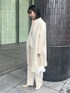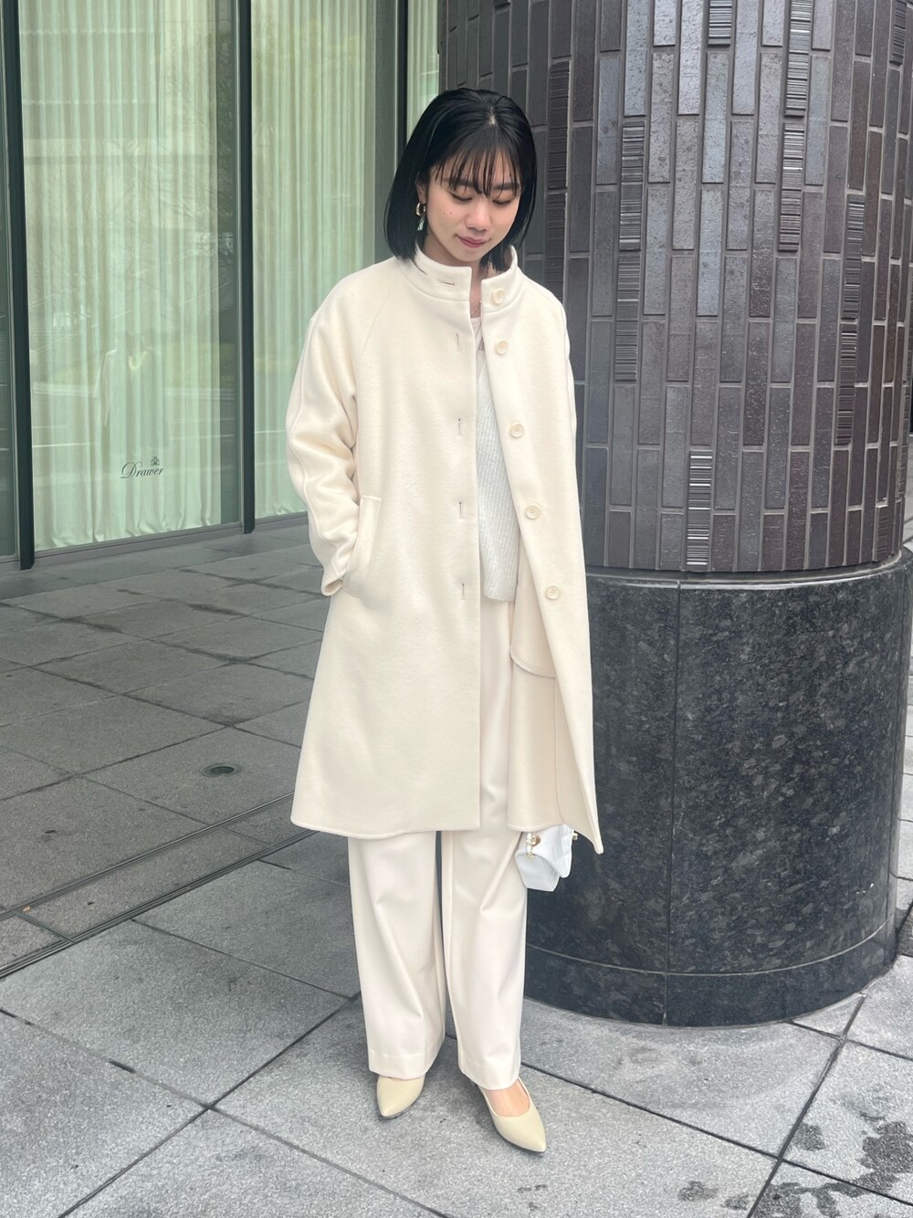 ホリデーシーズンに向けた ワントーンコーデ🌨 トップスも気合を入れたいですが 上に纏うアウターも素敵でいたいですよね アウターはトレンドのスタンドコート 肩落ちでゆるっと着れます 襟が高すぎないのが良いポイント トップスはシアーとラメの組み合わせで 特別感を出しました🎄 ボトムスはゴムも入ってる楽チンパンツです 裏起毛なので 肌触りが気持ちよく暖かいです
