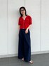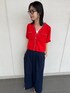 トップスの赤色中心に カジュアルコーデ👓 赤×ネイビーで 少し軽く綺麗目に 人気のフワシャギーシリーズ コンパクトにきれて ボリュームボトムスとの相性◎ ボタンを少し開けて着るのも 個人的には可愛いスタイリングで 抜け感を出したい時におすすめです セカンドノーリーズのパンツは ウエストゴムで履きやすく 夏場まで着れる生地感です。 店頭在庫少なくなっております お在庫あるうちに是非✨