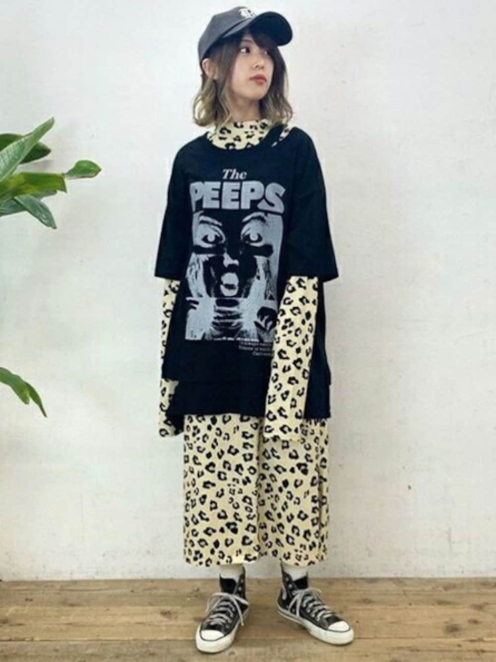 レオパードが可愛いハイネックロングワンピ。 ビッグTをレイヤードするスタイリングがおすすめです♪