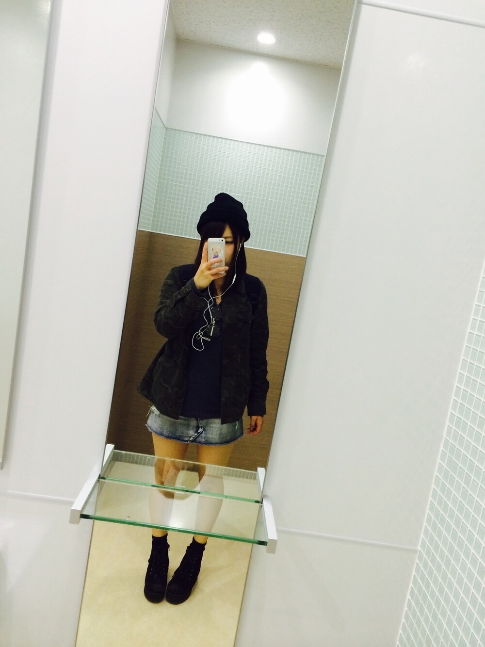 迷彩柄をとりいれたので 中はシンブルな落ち着いた グレーを合わせてみました。笑 胸元には伊達眼鏡をワンポイント。