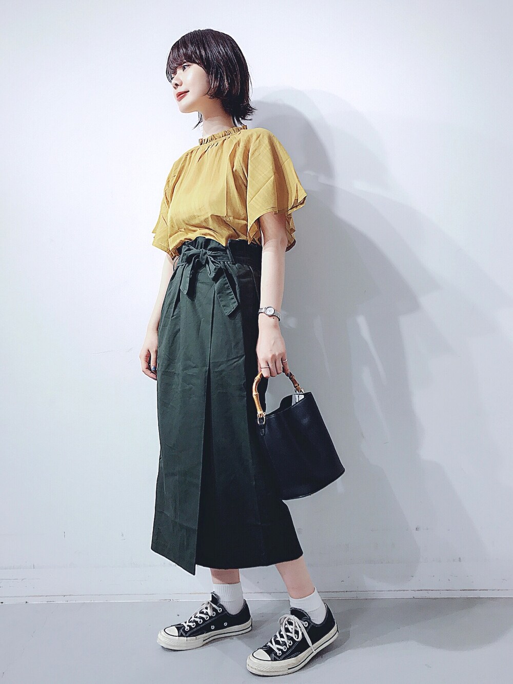 秋の新作たちでコーディネートしました🍁 半袖のブラウスでも、秋らしいカラーにすることで 落ち着いた雰囲気になりますね! スカートはラップスカートのようなデザインに ウエストのリボンが特徴で、 一気にオシャレ度があがる一着です。 ミディ丈が上品で大人っぽい〜 新作商品ですが、かなりお手頃な価格なので 是非チェックしてみてくださいね!
