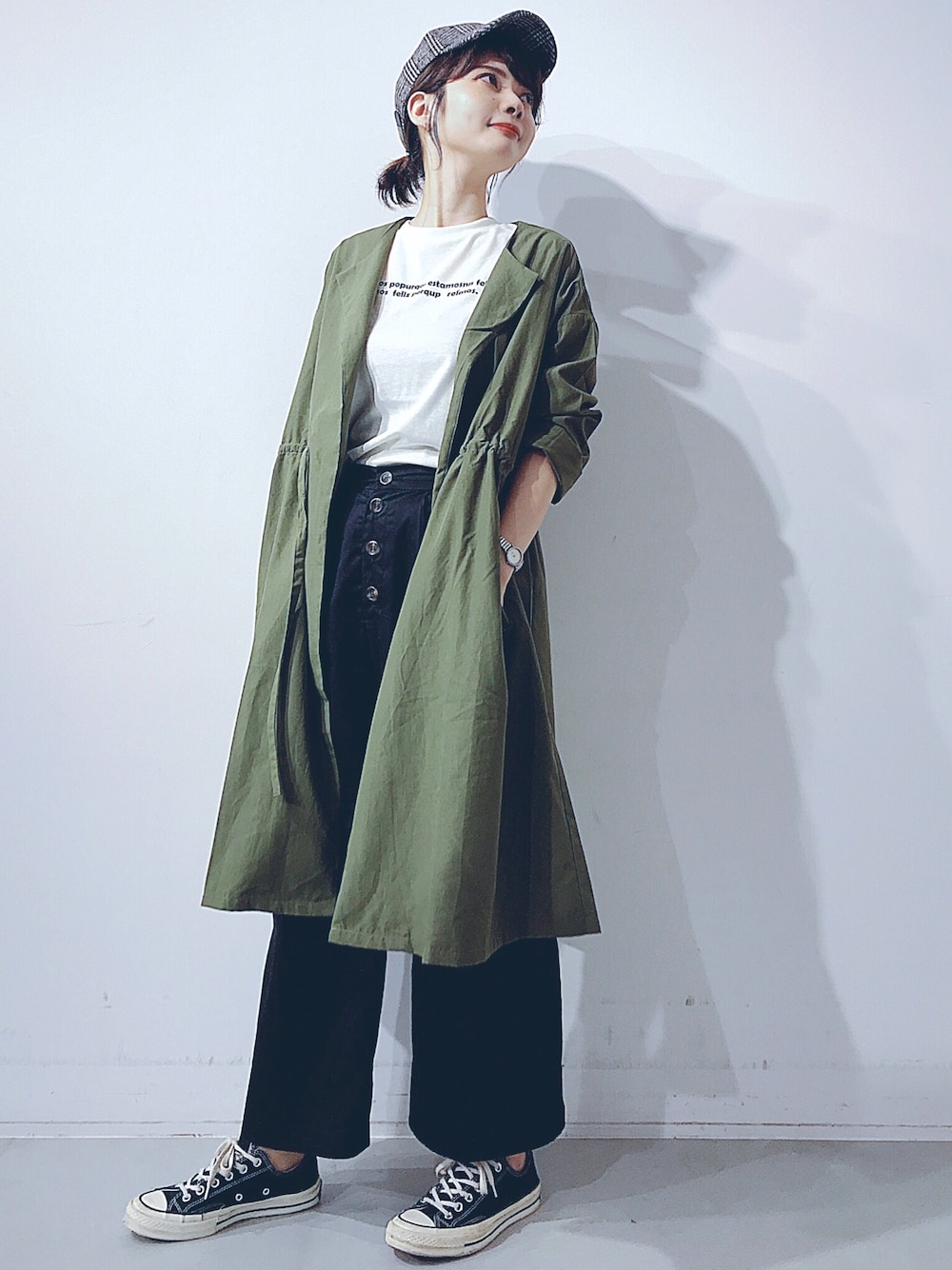 風邪で2日間寝込んでいました、、 皆様も体調管理にはお気をつけください、、! 今日はそんな季節の変わり目に ぴったりのライトアウターをご紹介します。 夜はかなり過ごしやすい気温になったので このくらい薄手の羽織があると便利です◎ ウエストがドロスト加工されているので きゅっと結ぶと雰囲気が変わります〜