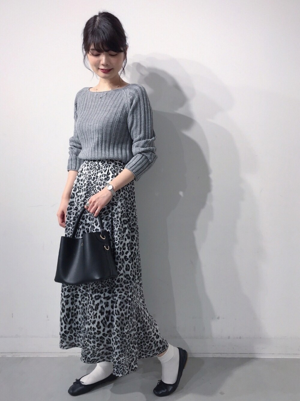 今期のトレンドのレオパード柄♡ サテンのような少し光沢のある ロングスカートが新作で入荷しました! 同系色で合わせると、大人っぽく着られます◎ リブのニットも新作で、 首元の開き具合が絶妙です🙆♀️