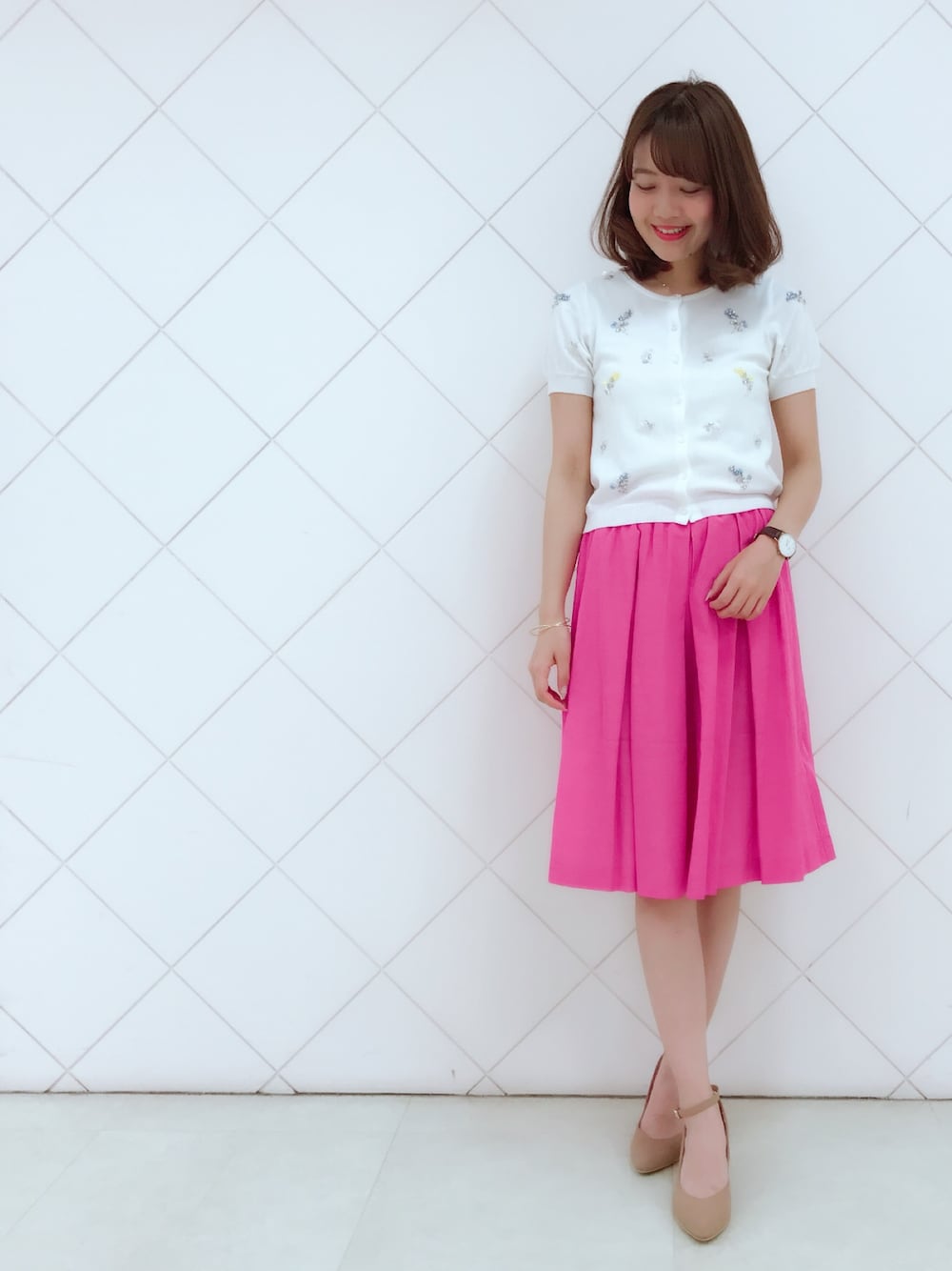 こんばんは✨ いつもイイね!&SAVE&コメント ありがとうございます😌💕 週末から夏日でお出かけがワクワクします✨ 今日は、ビジューカーディガンに カラースカートのきれいめコーデに💕 明日は、何を着ようかな?🤔✨