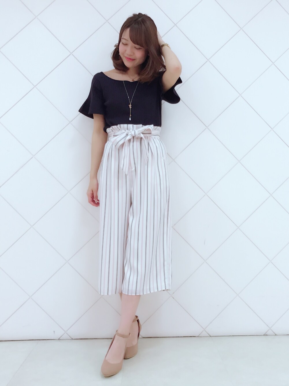 いつもイイね!ありがとうございます😌💕 今日は、大好きなストライプ柄を アクセントにまとめてみました✨ ピンクは、甘くならないように ネイビーやクロと合わせたくなります🤔