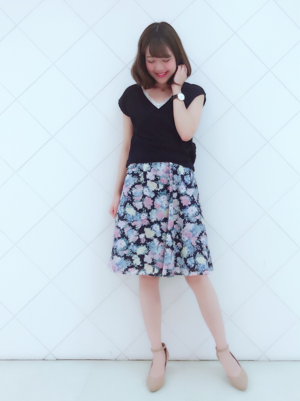 こんばんは✨ いつもご覧下さりありがとうございます💕 雨の日も花柄スカートで気分もUP✨