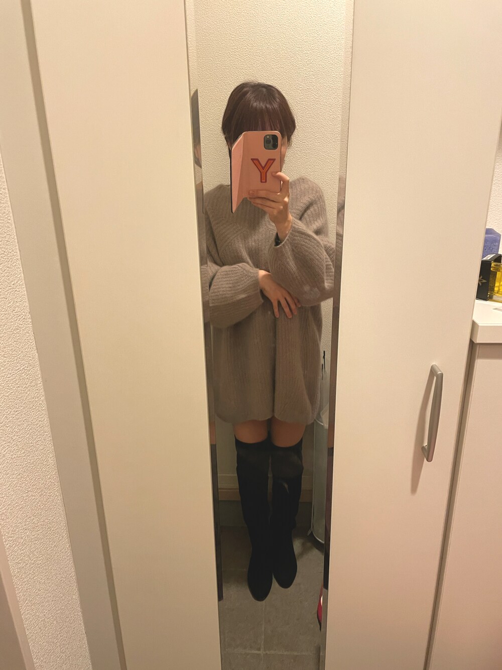 貰いもののニーハイブーツに挑戦♡ 身長低めだと、こうゆうワンピースなら合わせやすい👍