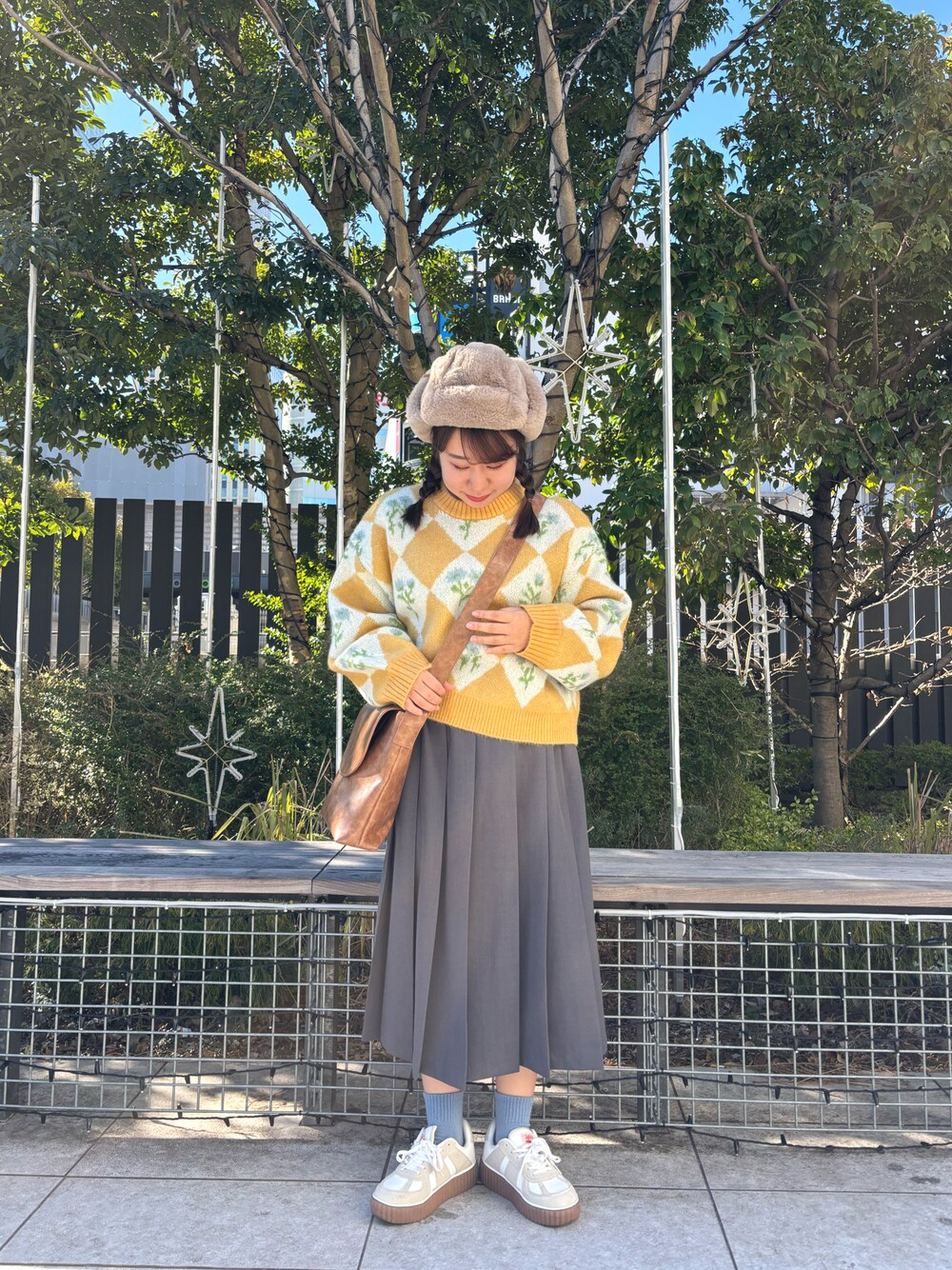 まだ寒いですが、春物を取り入れたい時は明るいお色の物を合わせるのがおすすめです🌸 鮮やかなイエローのニットは少しレトロなデザインでかわいいです🫶 オールシーズン使える、サイドラインが入ったプリーツスカートはどんなトップスにも合わせやすく、1枚あると便利です!