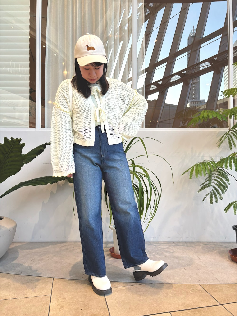 デニムを着ることが多くなる春は、明るい色のトップスと合わせると春らしく、お顔も明るく見えます✨ カーディガンはリボンの結び方によって印象が変わるので着まわしがききます! キャップはダックスフンドがかわいいライトベージュ🤍わんちゃん好きにはたまらない、4色/4犬種展開です🐶