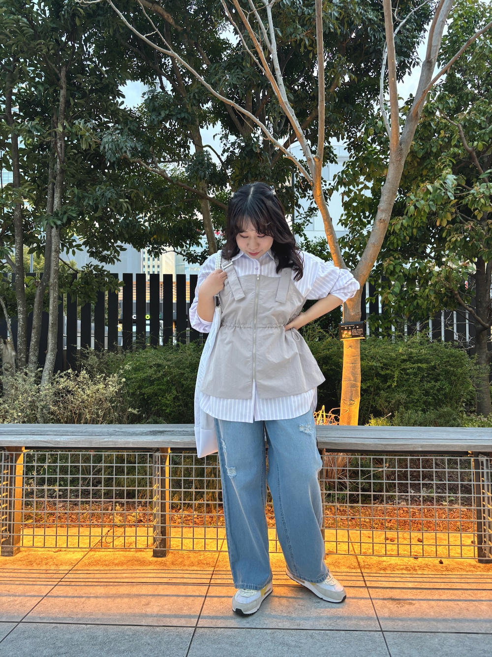 春らしいラベンダーカラーのシャツは、シワになりにくい素材でお手入れも楽ちんです! 着心地も良く、少しゆったりしたシルエットなので羽織としてもお使いいただけます✨ ビスチェを合わせるとバランスが取りやすいです! デニムはウエストがゴムになっているのでとても楽に履いていただけます🌟 色も明るめで春らしく🌷