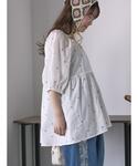 motokoのシャツ/ブラウス「花刺繍スクエアネックブラウス」を使ったコーディネート