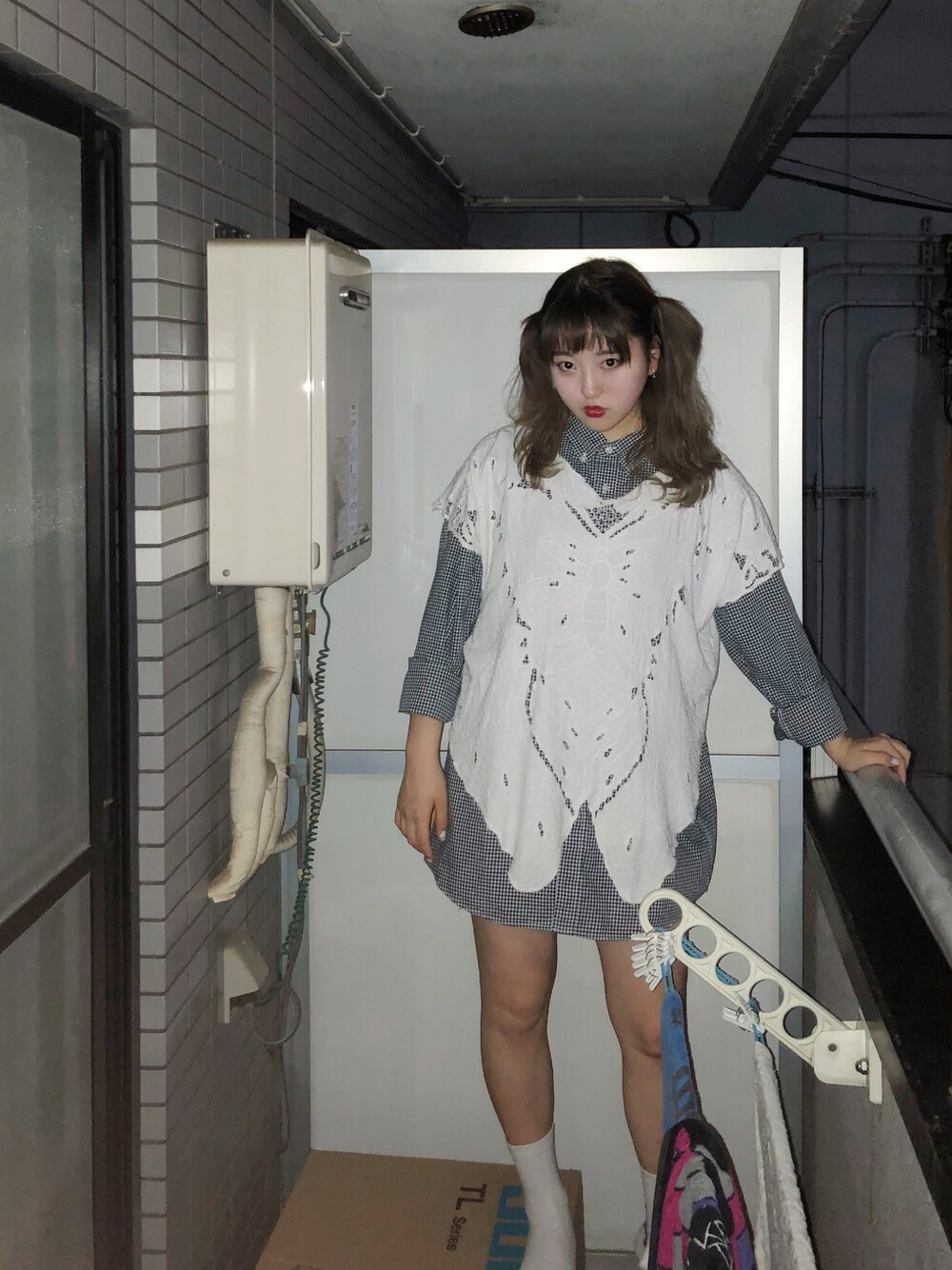 うちのベランダ この白いよくわからん服 うっすら蝶の柄入ってて可愛い