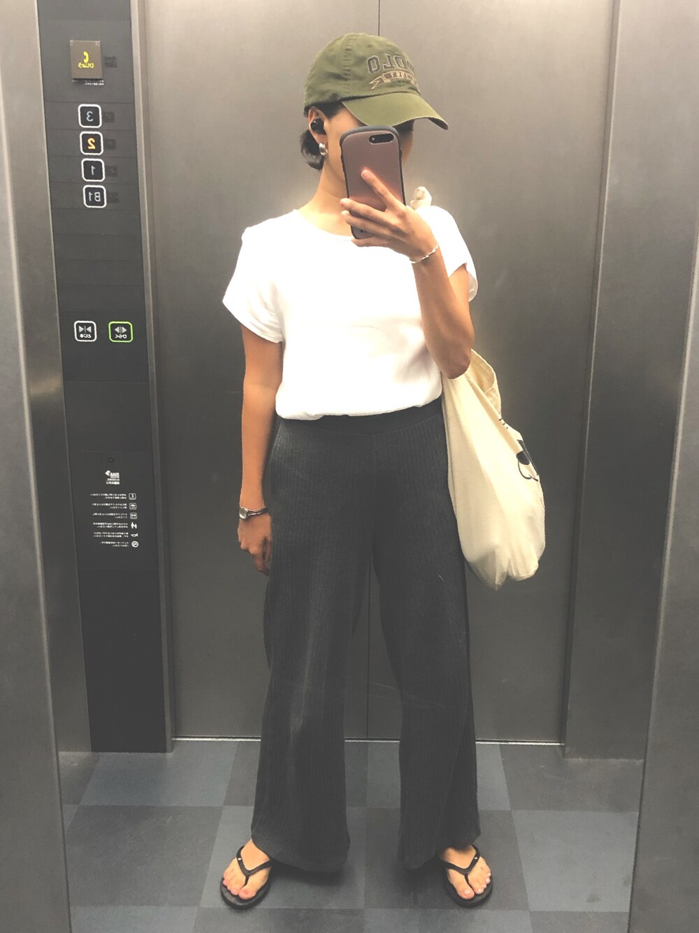 rnのその他パンツ「コットンリブワイドパンツ」を使ったコーディネート