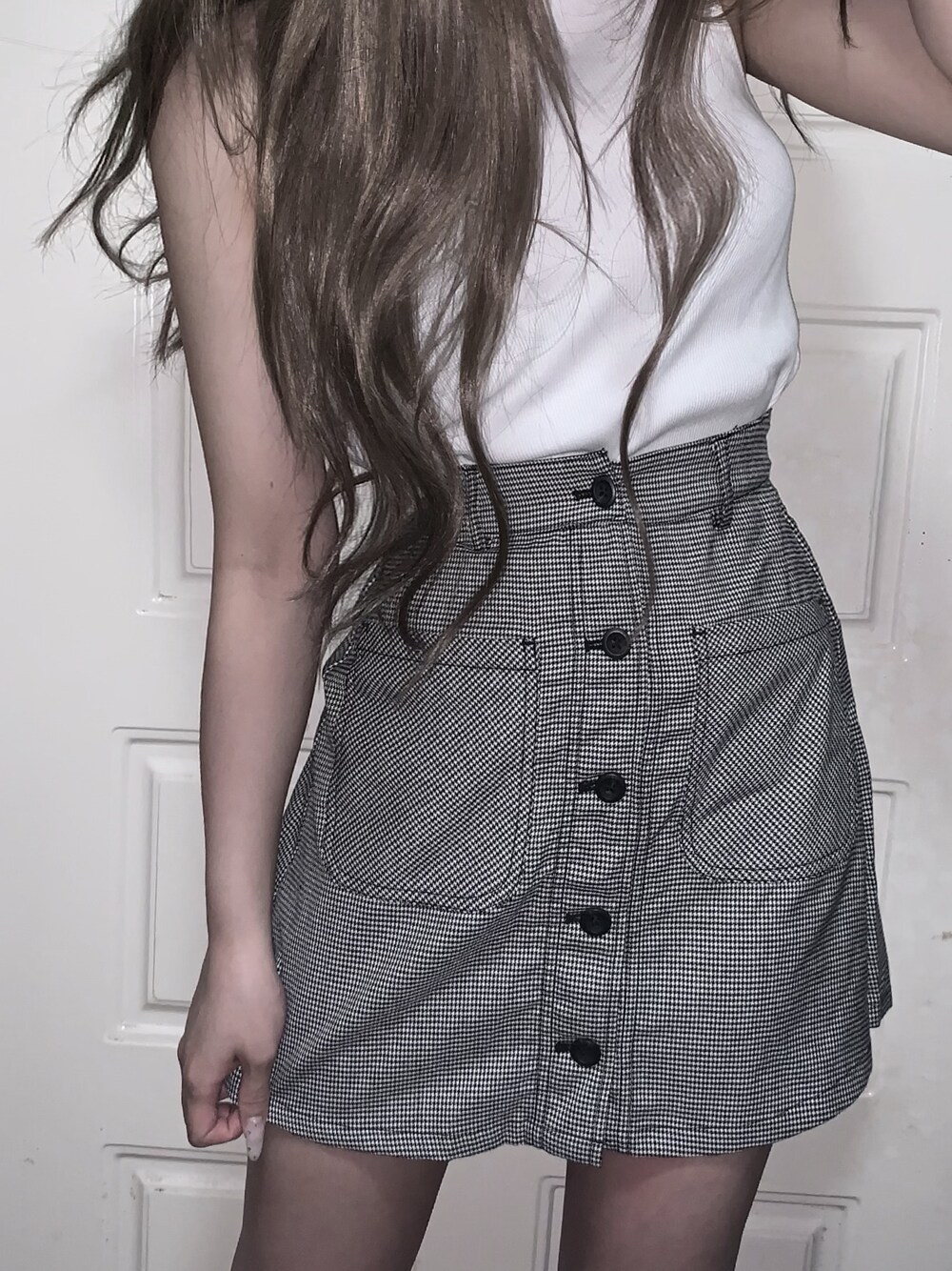 Lのスカート「WEGO/前ボタンチェックタイトミニスカート」を使ったコーディネート