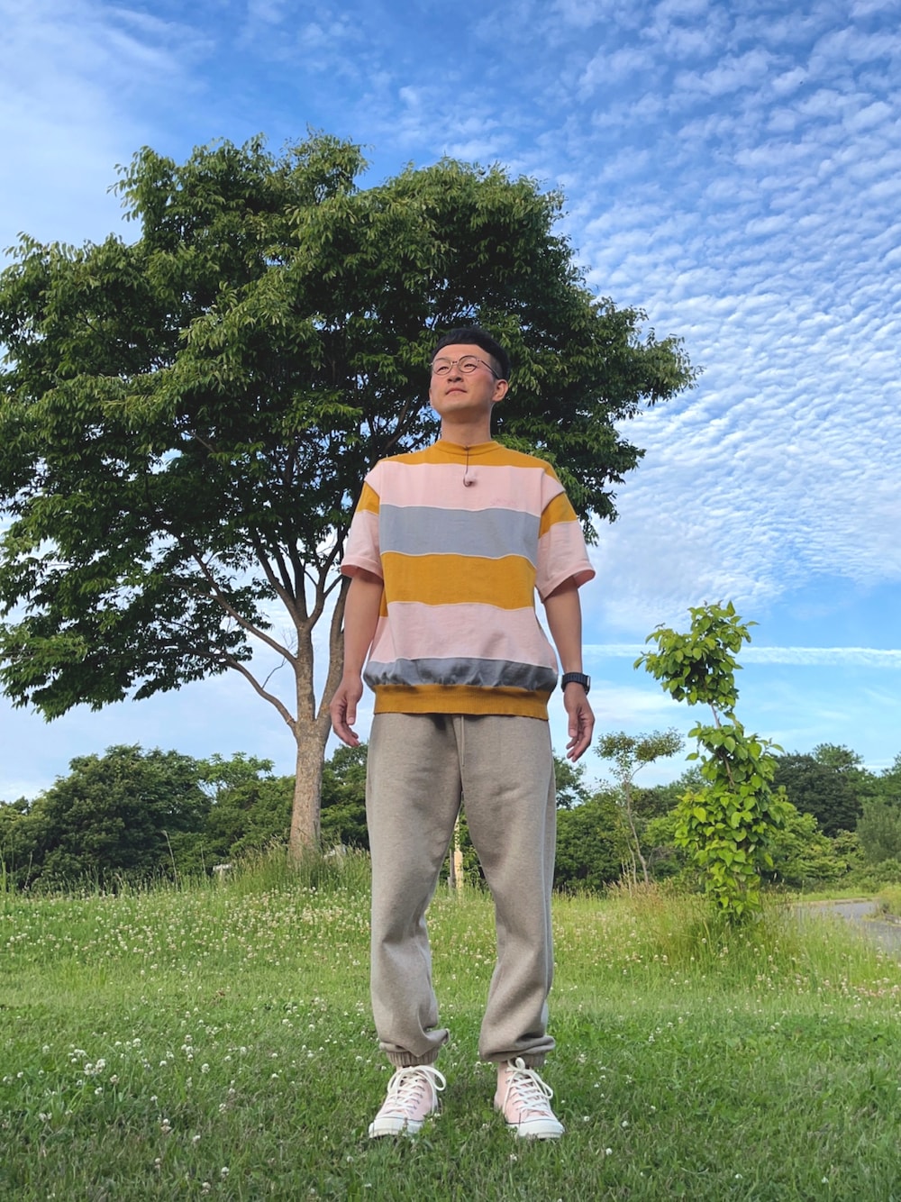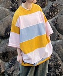ロバート馬場裕之のニット/セーター「【Snap club】 カラーマルチボーダー ビックシルエット アソートサマーニット/半袖ニット」を使ったコーディネート