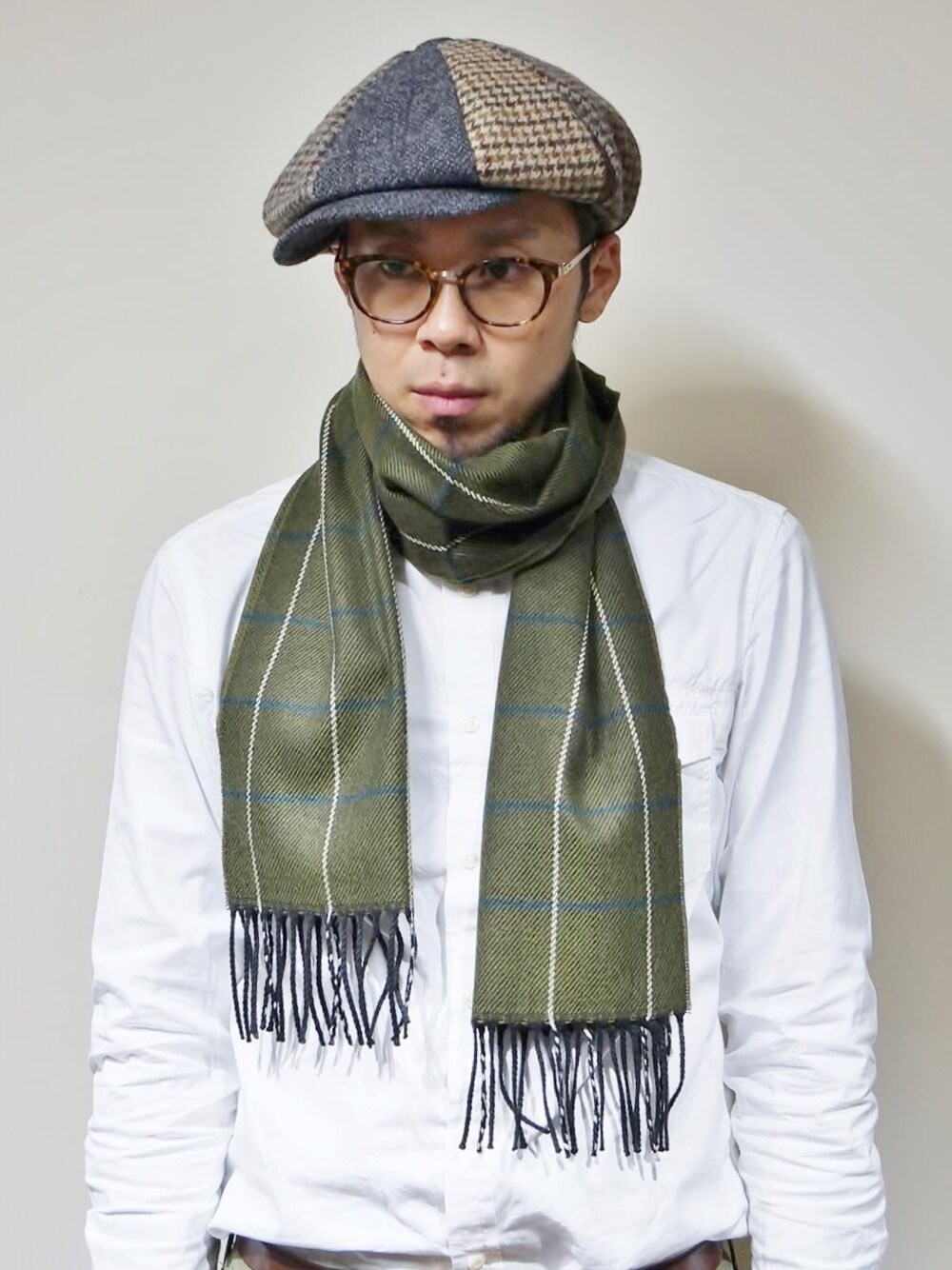 ロケットシップのマフラー「CORNILLON(コルニヨン) フランス製チェックマフラーKKI 」を使ったコーディネート
