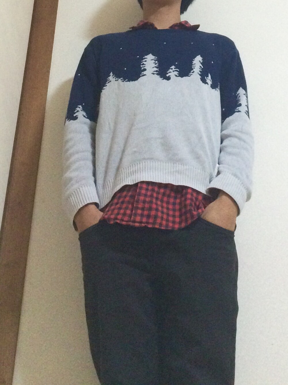今日のファッションテーマは冬を先取りです笑 クリスマスっぽい感じになった
