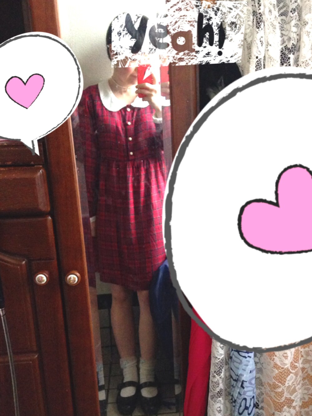 赤チェックワンピ(^^)