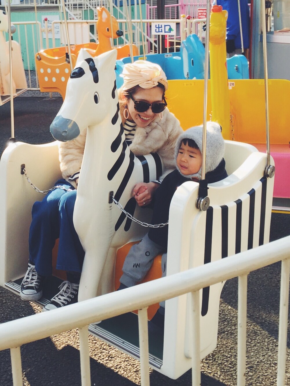 あまり洋服見えてませんが…🙄 息子は乗り物乗っている間、ずっとこの顔で固まってました🤗