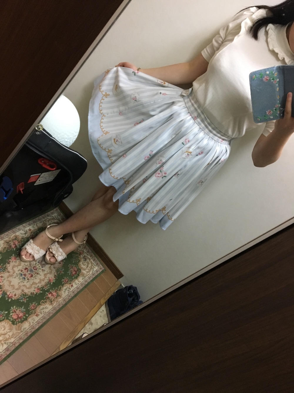 おはようございます。 台風だった昨日はあんまり雨降らず、夕方には晴れまして昨日より今日の方が大雨な広島です。 そんな今日のコーデです。 トップス、スカート→Ank Rouge サンダル→LIZ LISA