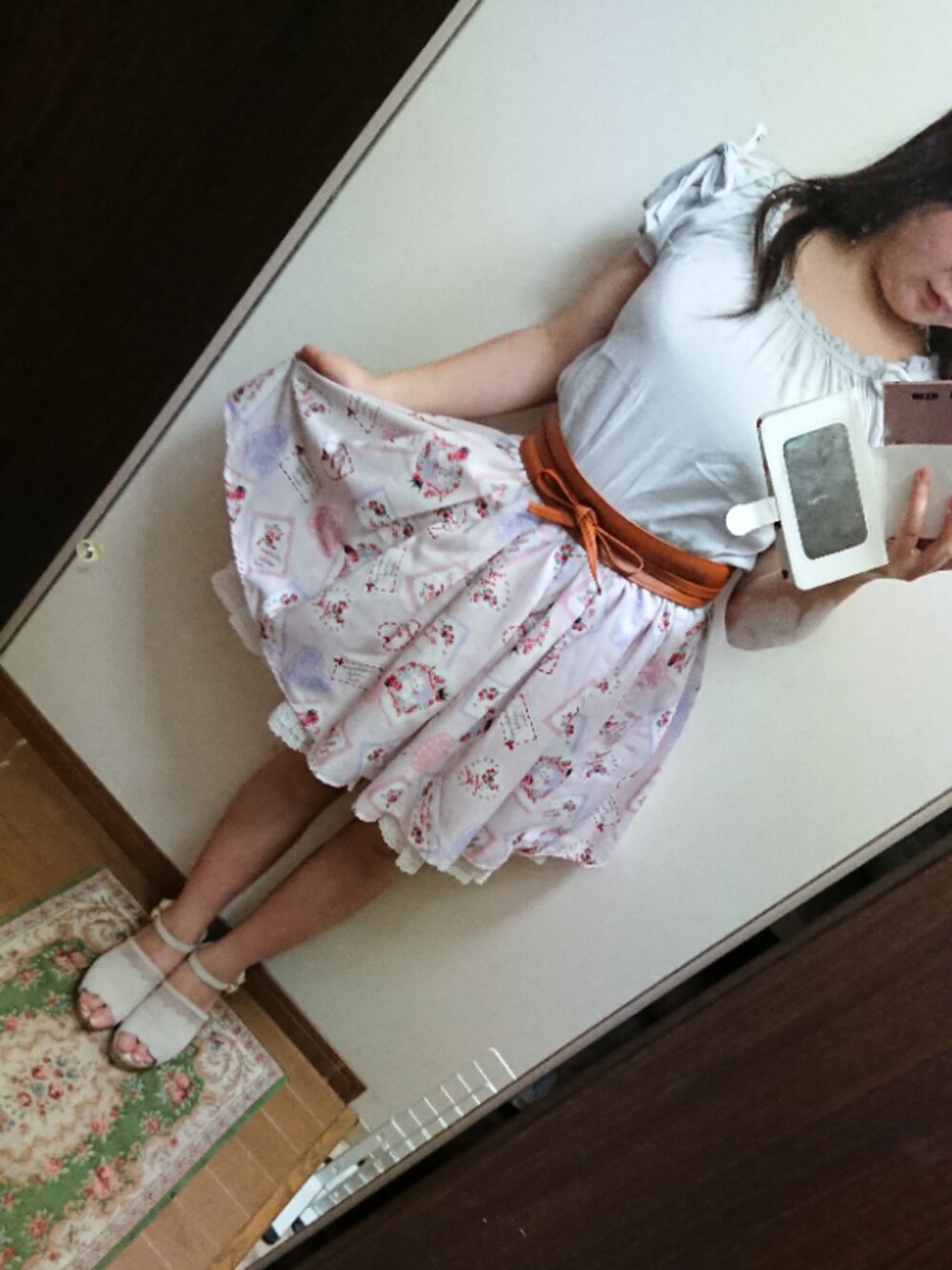 これもいつかのコーデです。 スカートは友達からもらいました。 トップス→Ank Rouge ベルト→dazzlin スカート→Ank Rouge サンダル→MAJESTIC LEGON