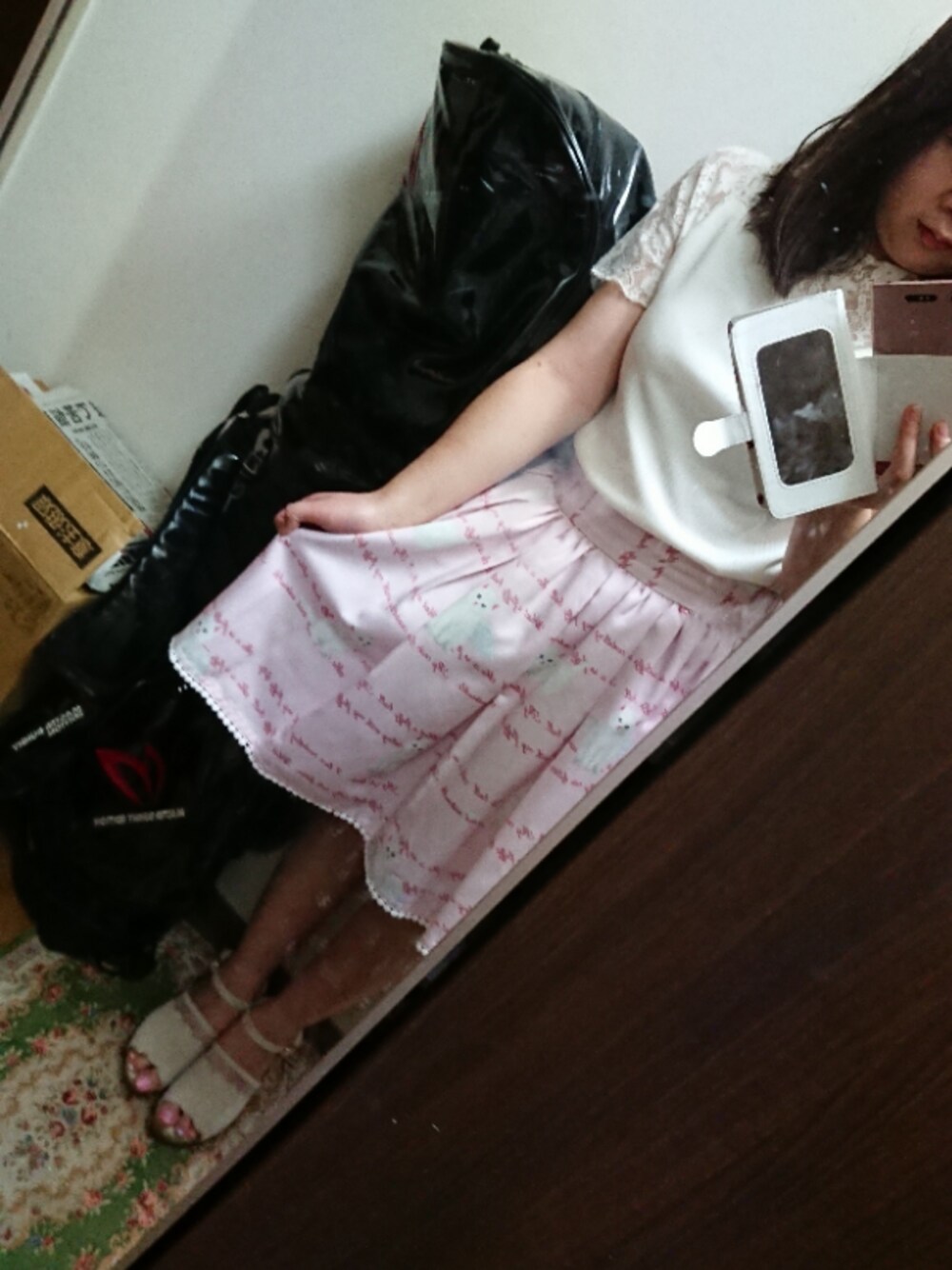 今日の通勤コーデです。 トップス→MAJESTIC LEGON スカート→Ank Rouge サンダル→MAJESTIC LEGON