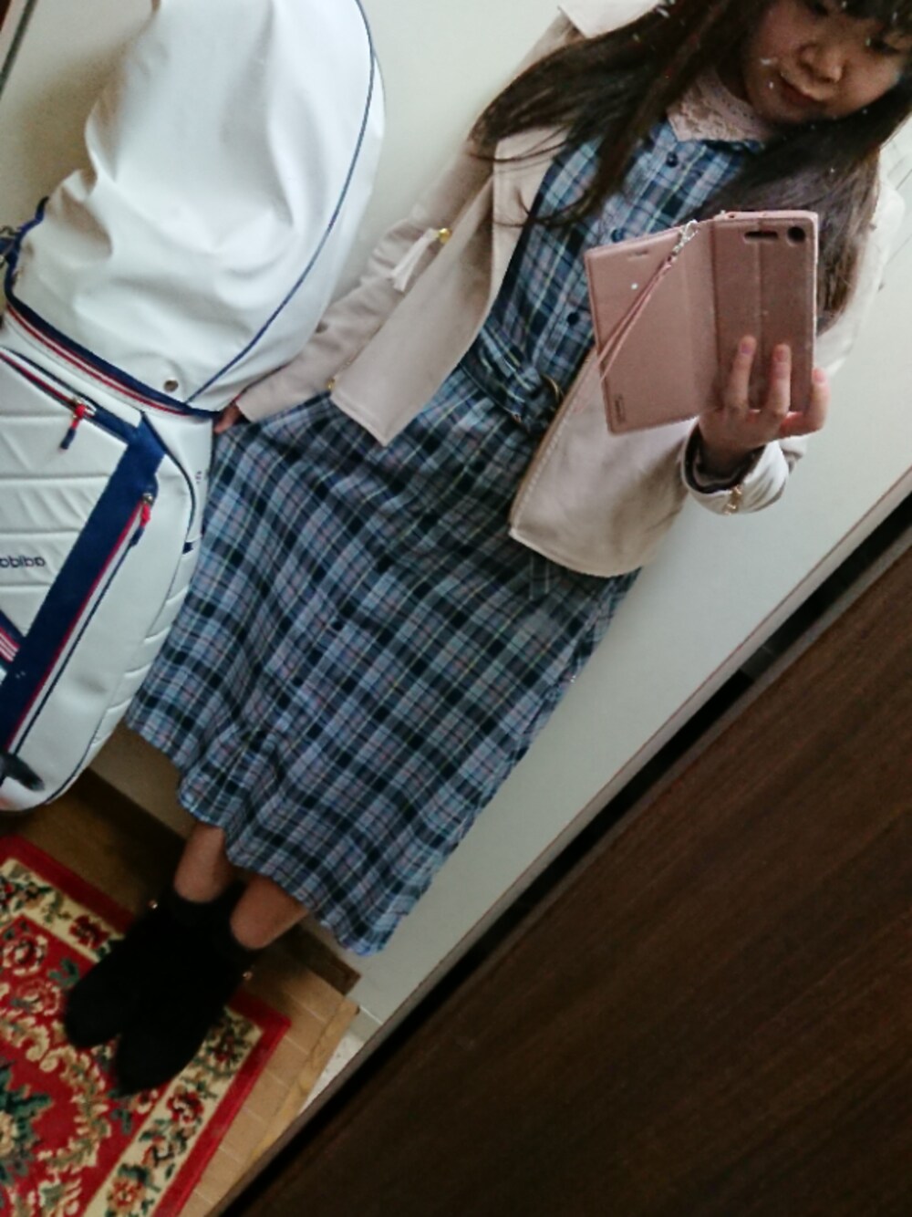 funamonのワンピース「2wayチェックロングワンピース」を使ったコーディネート