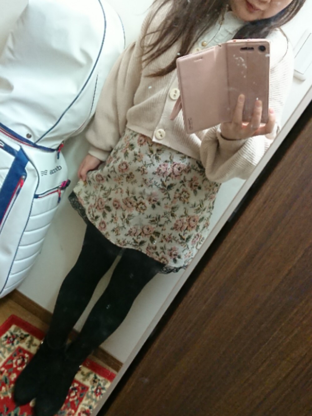 こんばんは! 今日の通勤コーデです。 ブラウス→Amavel カーディガン→who's who Chico スカート→Ank Rouge ブーツ→MAJESTIC LEGON