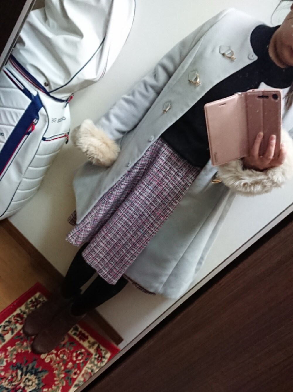 こんばんは! 今日の通勤コーデです。 コート→evelyn ニット→titty&Co. スカート→Noela ブーツ→MAJESTIC LEGON