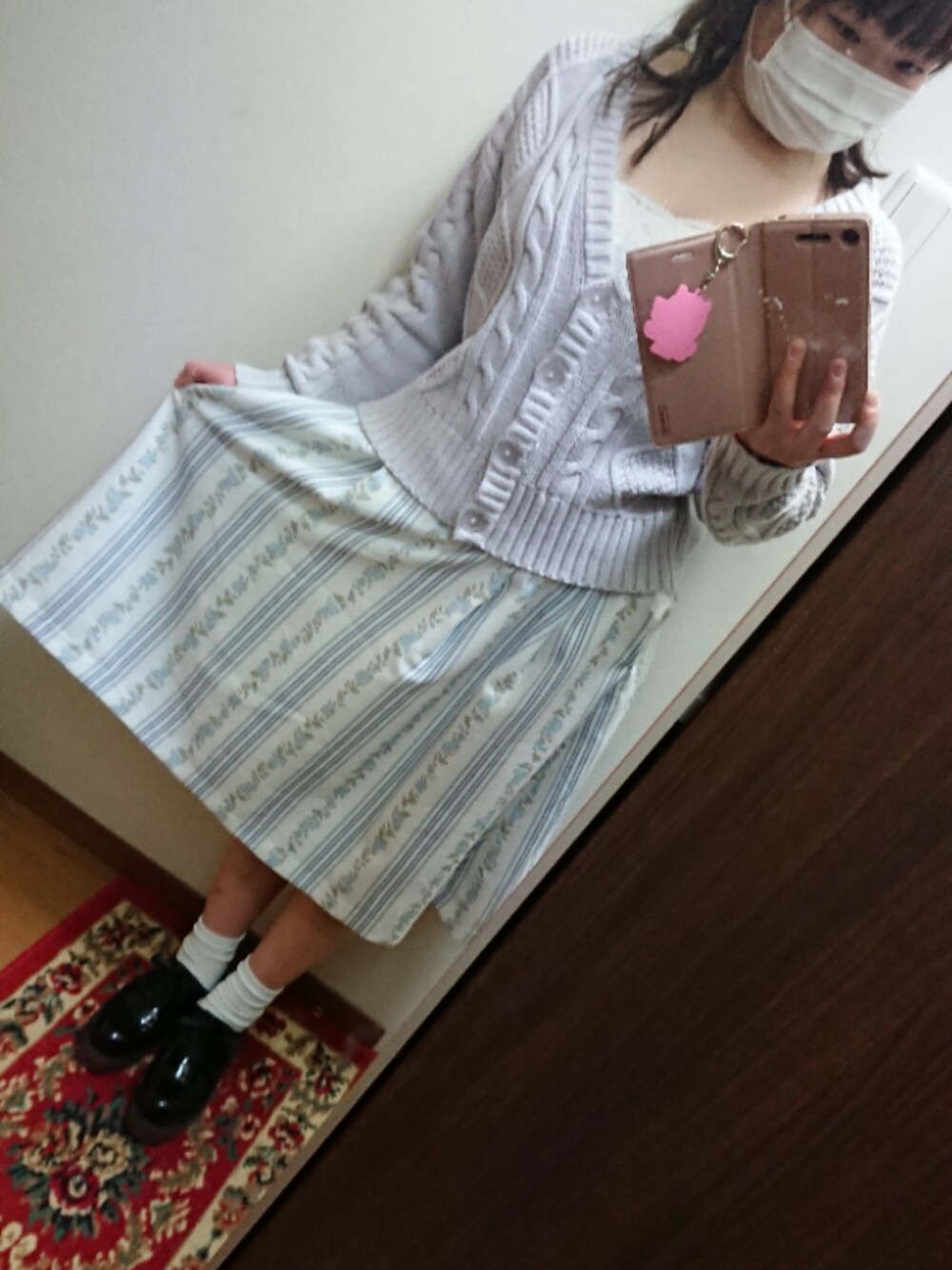こんばんは! 今日の通勤コーデです レースのインナー→one after another NICE CLAUP カーディガン→Ank Rouge スカート→dazzlin 靴下→DAISO 靴→MAJESTIC LEGON