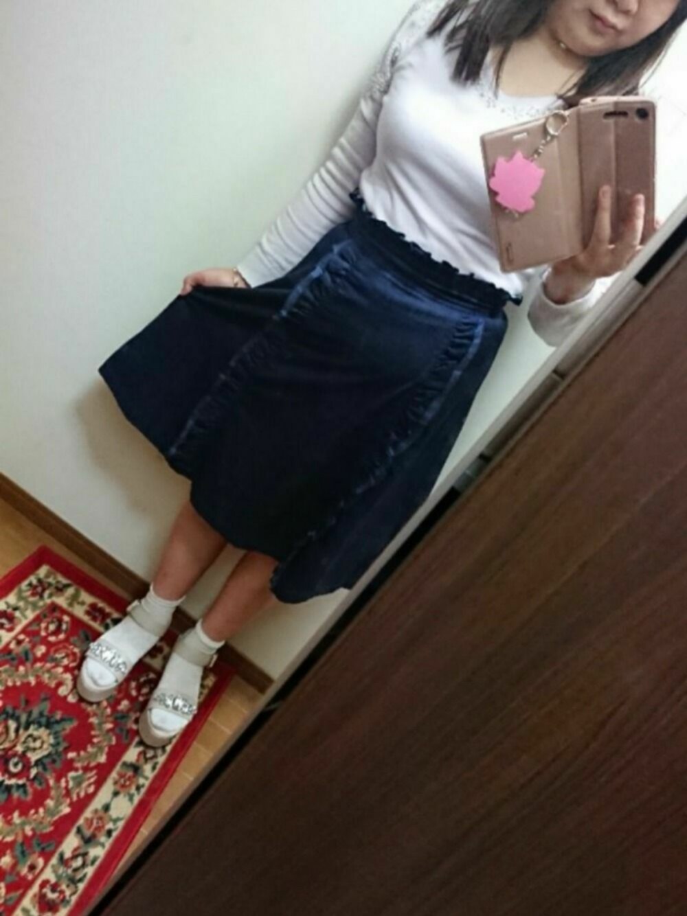 こんばんはー! 今日の通勤コーデです。 今日は出勤前に友達と少しだけ会ってジェラート食べながら話しました❤ 友達とスカート合わせたのでこのスカートを履きました。 トップス→LODISPOTTO スカート→LODISPOTTO 靴下→DAISO サンダル→MISCH MASCH