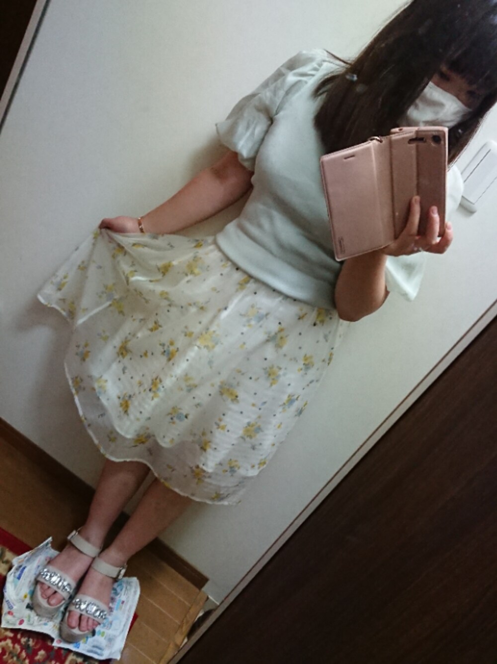 こんばんは! 今日の通勤コーデです。 トップス→31 Sons de mode スカート→dazzlin サンダル→MISCHMASCH