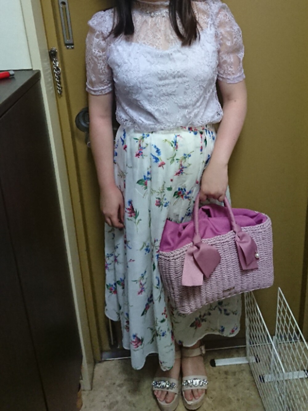 funamonのスカート「スパンオーガンジー花柄ロングスカート」を使ったコーディネート
